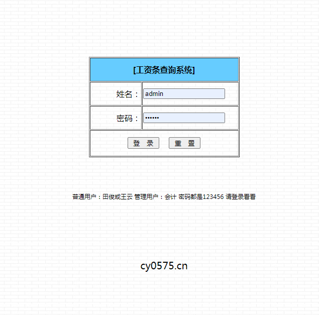 0833工资条查询系统源码ASP源码,1、工资条查询系统v4.1即可把excel当作数据库,也直接操作excel文件,亮点可以显示复杂的excel表格 2、可以对员工分组查询 3、可以任意增添和修改分组信息、员工信息、工资表信息 4、会计可以查询任何人的工资,修改任何人的密码和信息 5、如果想显示复杂的工资表,需要设置组件(Microsoft Excel 应用程序)的访问权限.演示地址http://yanshi.cy0575.cn/0833/,请仔细看登陆后的操作说明。 以萌养阵,方可长命百岁。 |