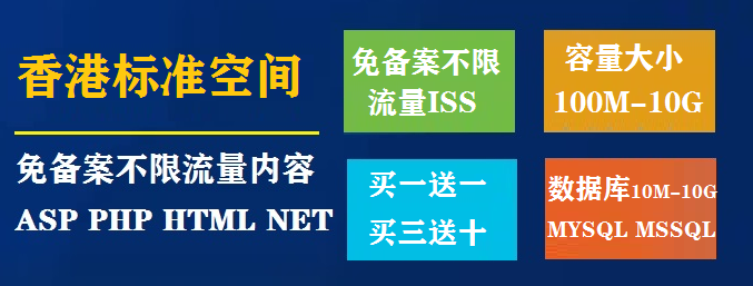 简介:香港免备空间 不限流量人数,即可即用!100M-1G不等!