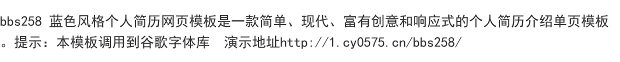 | 阅:43708 | 回:4 | bbs258 蓝色风格个人简历网页模板介绍单页模板手机电脑自适应 |