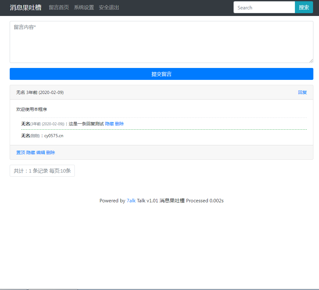 bbs282 PHP开发的简易留言板论坛源码无需单独安装数据库 ![]() 以萌养阵,方可长命百岁。 |
