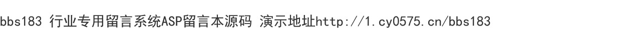 | 阅:55777 | 回:3 | bbs183 行业专用留言系统ASP留言本源码 |