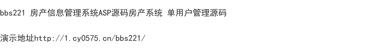| 阅:77698 | 回:5 | bbs221 房产信息管理系统ASP源码房产系统 单用户管理源码 |