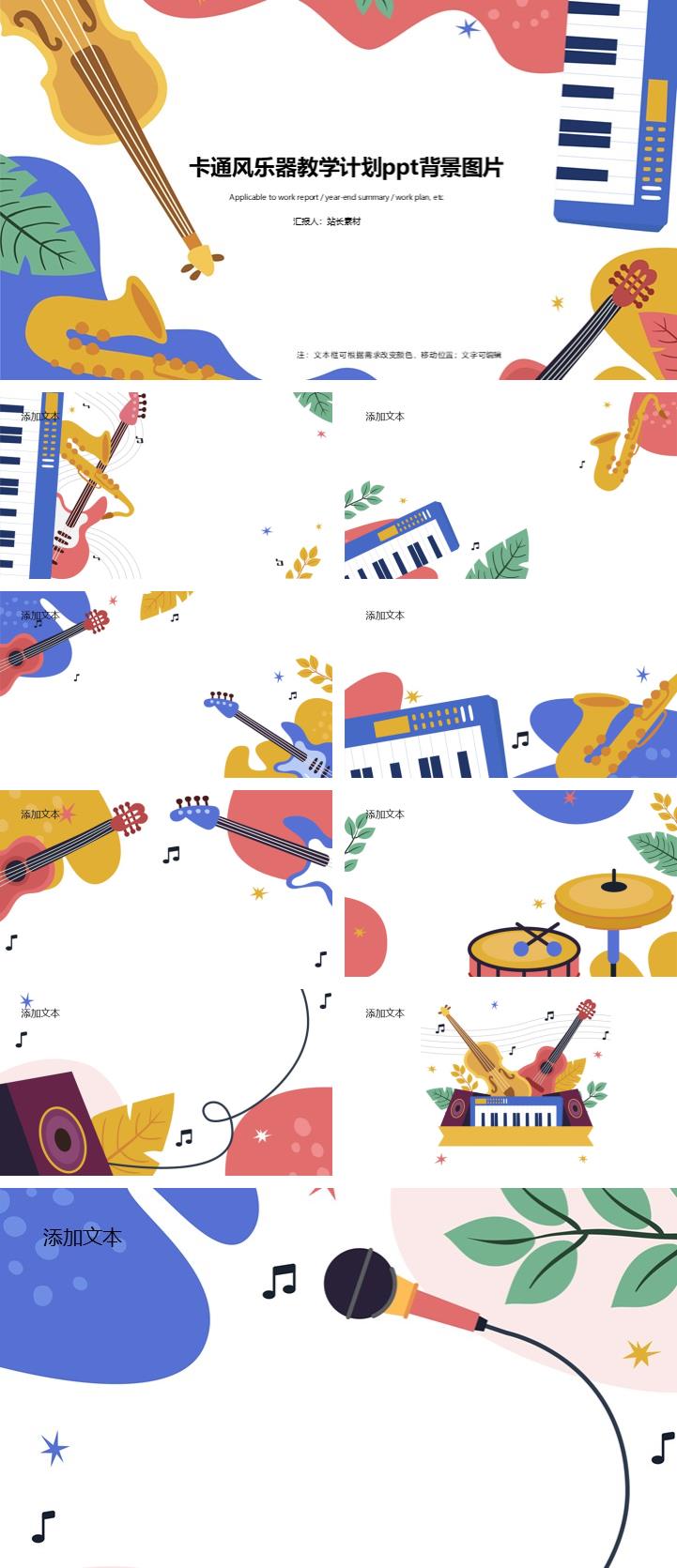 A51-卡通风乐器教学计划ppt背景图片
