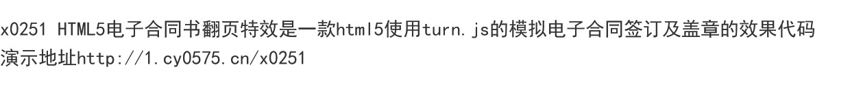 x0251 HTML5电子合同书翻页特效电子合同签订及盖章的效果代码 ![]() 以萌养阵,方可长命百岁。 |