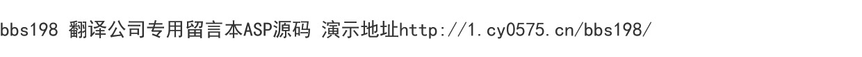 | 阅:64981 | 回:2 | bbs198 翻译公司专用留言本ASP源码 |