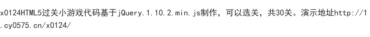 x0124HTML5过关小游戏代码基于jQuery.js制作可以选关共30关 ![]() 以萌养阵,方可长命百岁。 |