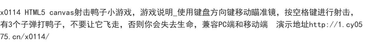 x0114 HTML5 canvas射击鸭子小游戏兼容PC端和移动端 ![]() 以萌养阵,方可长命百岁。 |