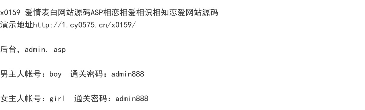 x0159 爱情表白网站源码ASP相恋相爱相识相知恋爱网站源码 ![]() 以萌养阵,方可长命百岁。 |