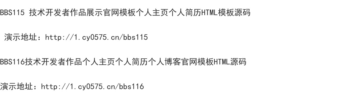 | 阅:30447 | 回:4 | BBS115 116技术开发者作品展示模板个人主页个人简历HTML模板源码.. |