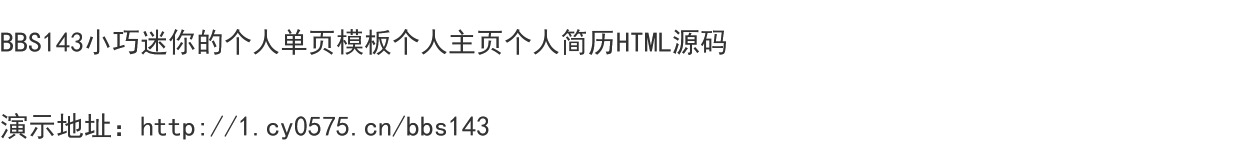 | 阅:39731 | 回:4 | BBS143小巧迷你的个人单页模板个人主页个人简历HTML源码 |