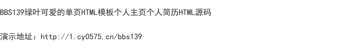 | 阅:35435 | 回:2 | BBS139绿叶可爱的单页HTML模板个人主页个人简历HTML源码 |