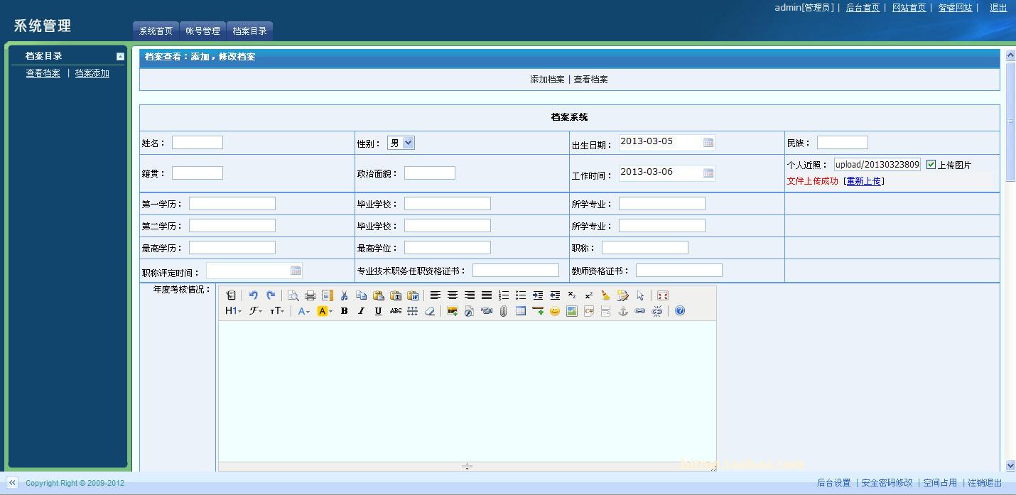 | 阅:58109 | 回:2 | 人事档案管理系统 人事管理 档案管理 教师档案管理 ASP源码 5元一.. |