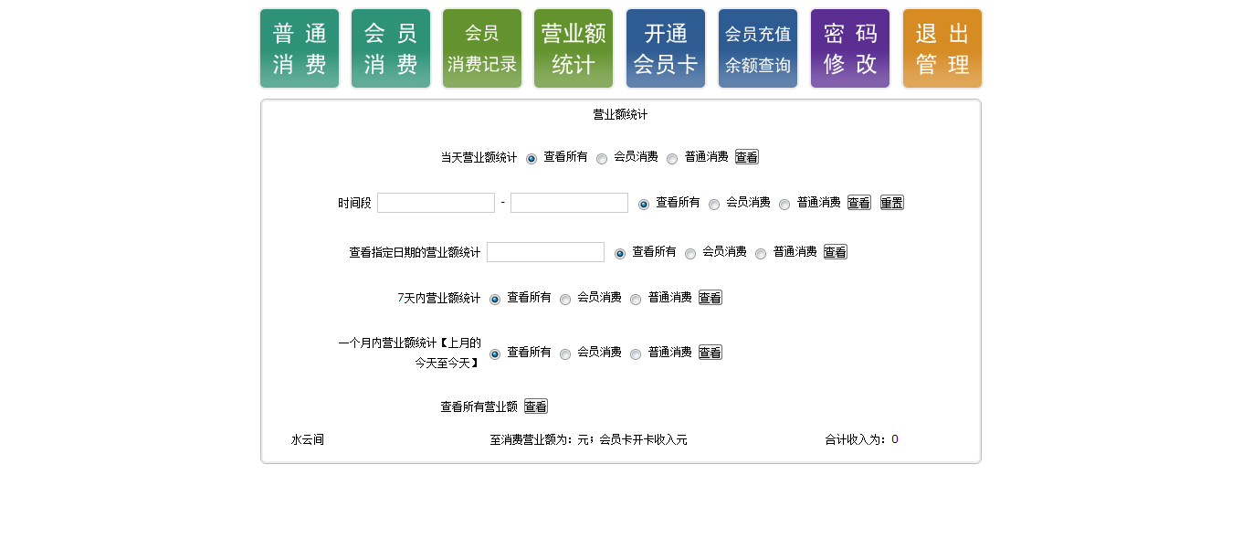 美容美发会员卡收银管理软件v6.5 但使用的过程中出现的任何问题 我们通过调研美容美发行业,开发了如下功能的会员卡与收银软件 适用于美容美发的会员卡管理与收银管理 前台测试帐号是:user 密码问:客服 后台测试帐号与密码都是:问客服 前端收银员功能: 1.普通消费添加--非会员消费 2.会员卡消费添加 3.会员消费记录查询 4.收银员查询所分店的营业额统计 5.会员卡开通 6.会员卡充值 7.会员卡余额查询 8.收银员密码修改 演示地址:http://yanshi.cy0575.cn/a1 以萌养阵,方可长命百岁。 |