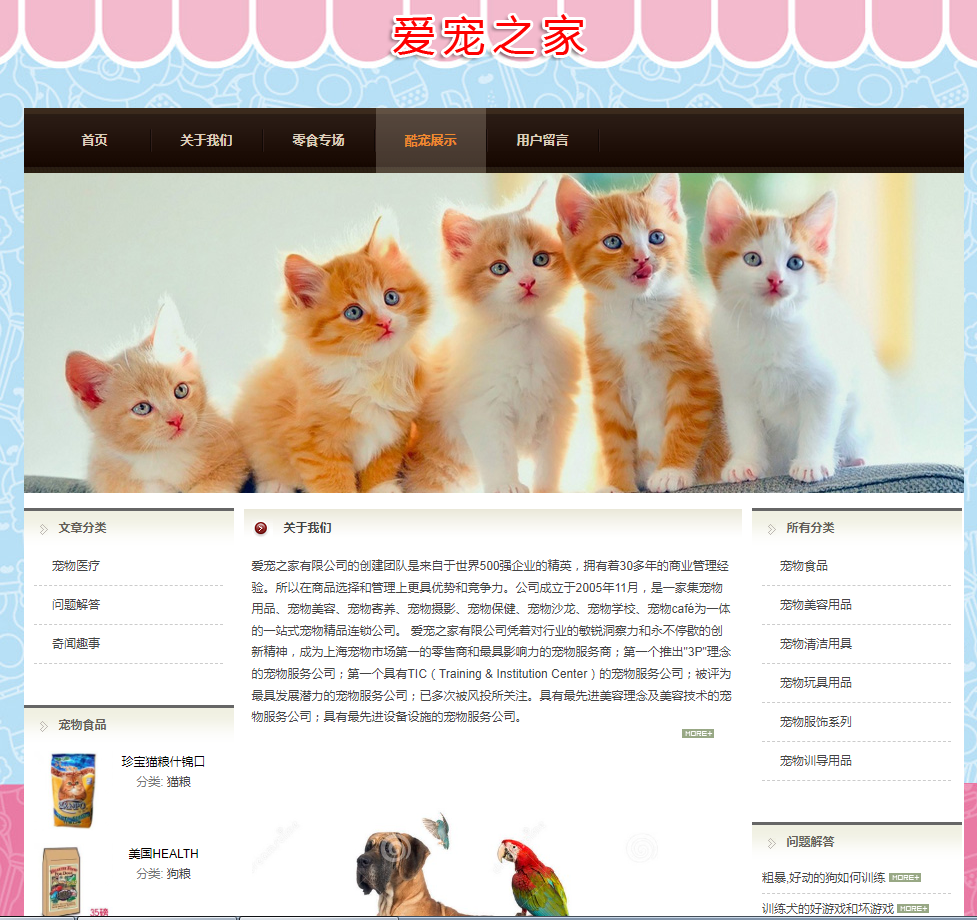 b36蓝色版爱宠之家网站模板宠物网站HTML模板源码 ![]() 以萌养阵,方可长命百岁。 |