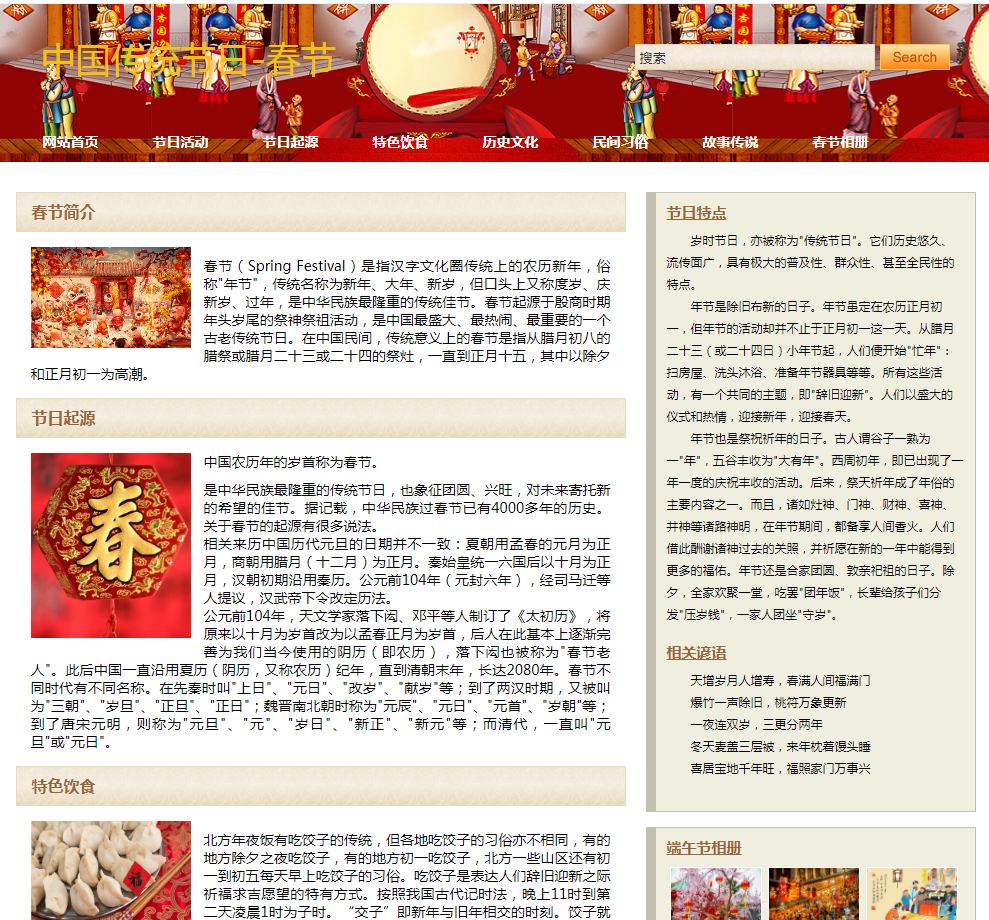 » b15节日春节网站模板带8个页面模板HTML春节快乐网站模板源码