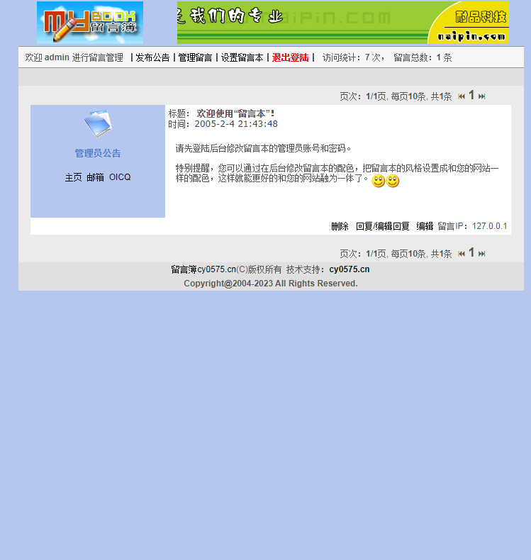 0645 留言簿ASP留言本源码访客留言本源码 ![]() 以萌养阵,方可长命百岁。 |