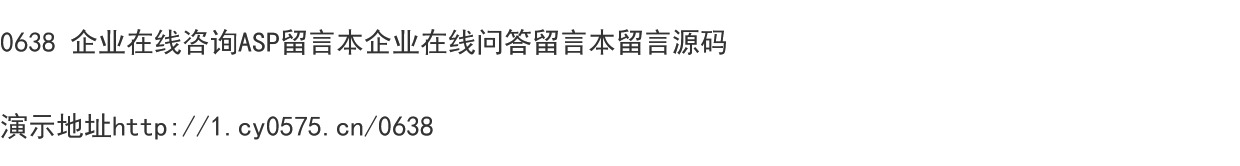 | 阅:92067 | 回:7 | 0638 企业在线咨询ASP留言本问答留言本留言源码简约经典留言本 |