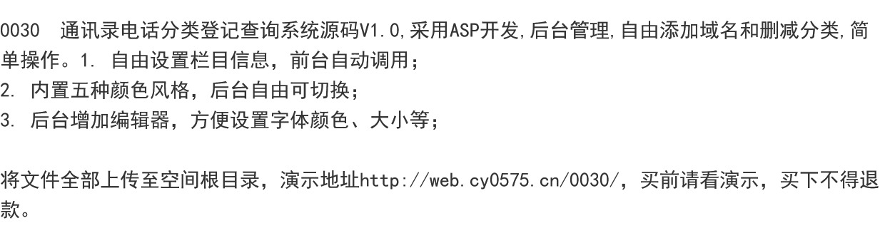 0030 ASP通讯录分类登记查询系统源码采用ASP开发全后台登记管理 ![]() 以萌养阵,方可长命百岁。 |