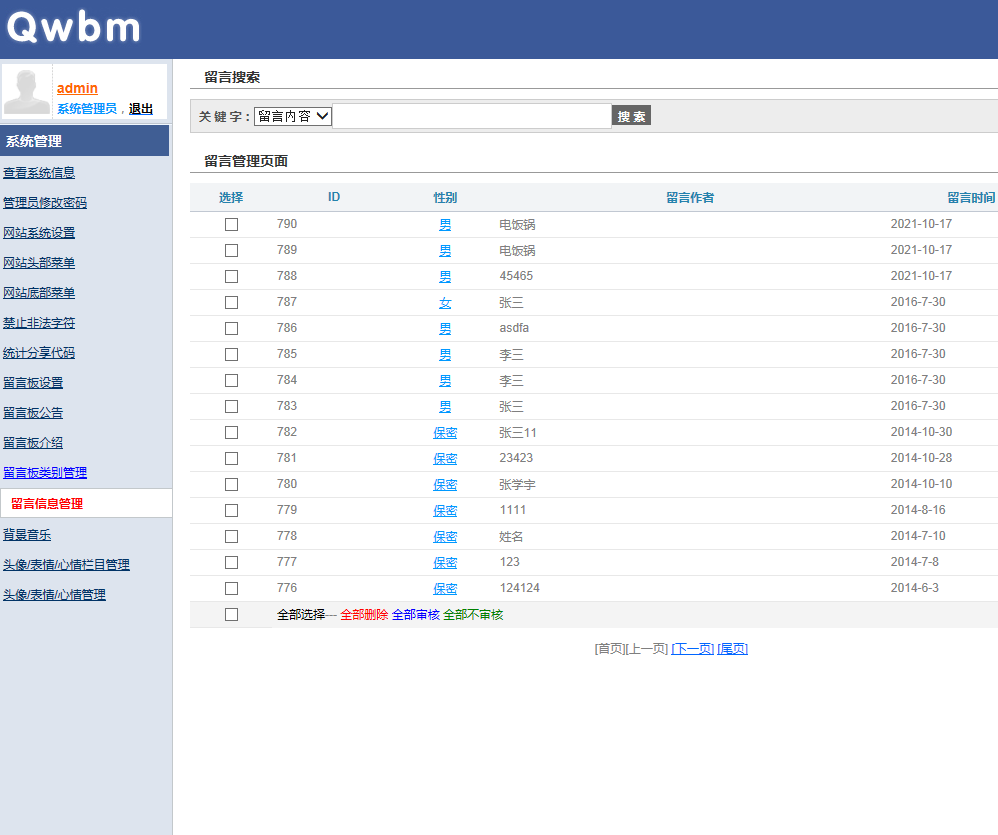 深山留言本源码ASP留言本16种风格模板可选0032手机电脑自适应 深山留言本源码ASP留言本源码有8种风格模板可选0032 深山留言本源码ASP留言本源码有16种风格模板可选0032,ASP源码具有单独的后台管理面板,功能丰富,后台可以扩展模板可以选择16款前台模板样式,总有一款适合你, 演示地址http://web.cy0575.cn/0032/后台可以选择16种风格模板可选 以萌养阵,方可长命百岁。 |