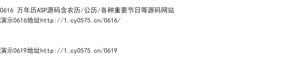 | 阅:36137 | 回:3 | 0616 0619万年历ASP源码含农历/公历/各种重要节日等源码网站 |