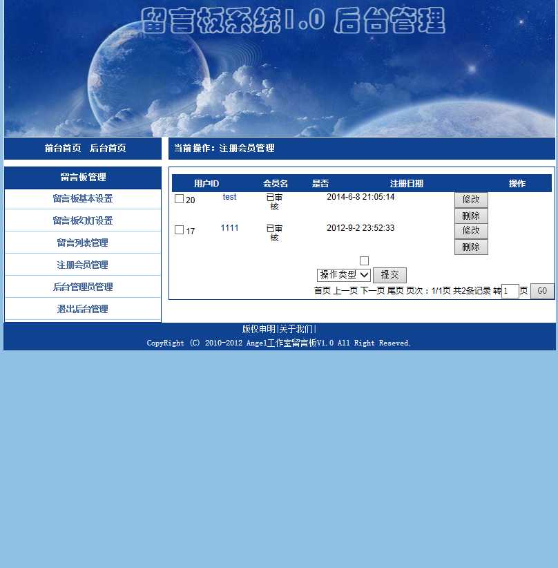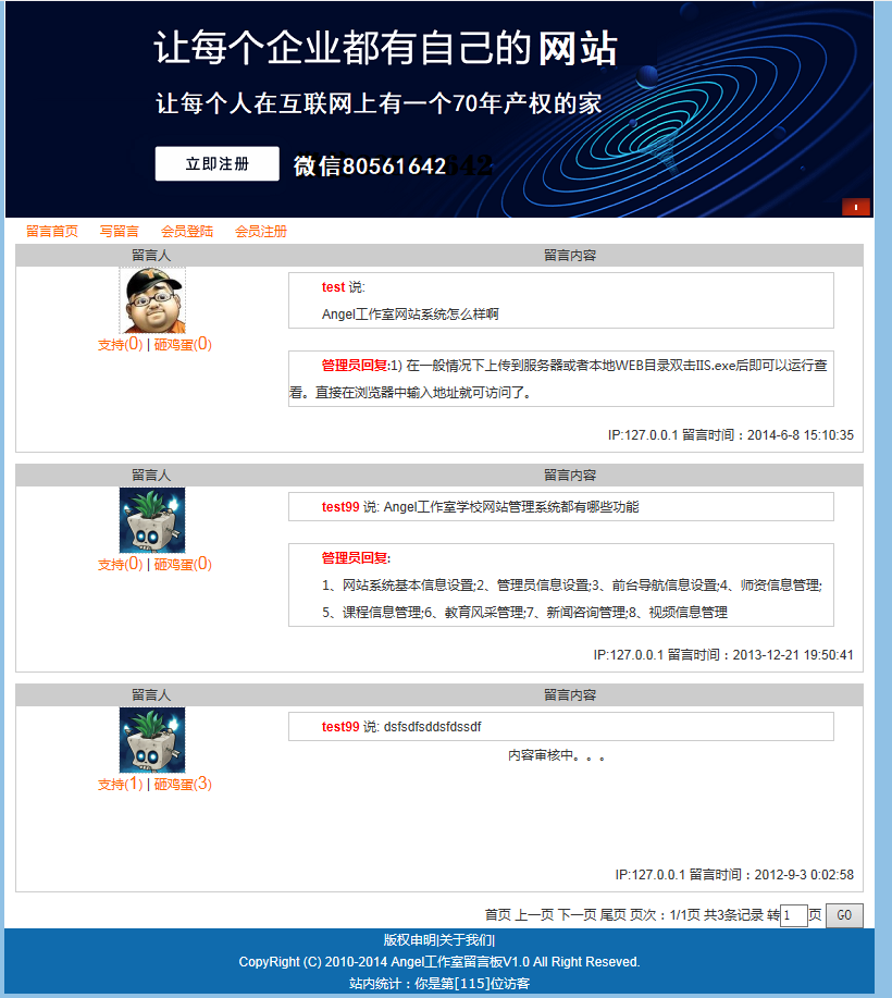 | 阅:38698 | 回:4 | 0050 留言本源码ASP留言源码留言板系统源码后台会员注册管理管理.. |