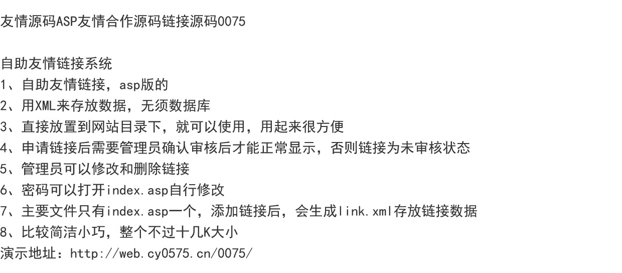 | 阅:69378 | 回:2 | 0075友情源码ASP友情合作源码链接源码直接上传即可运行aspaccess.. |