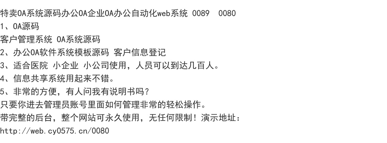 | 阅:73016 | 回:9 | 特卖OA系统源码办公OA企业OA办公自动化web系统 0080 |