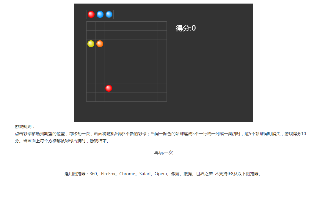 | 阅:74803 | 回:2 | 0545HTML5实现五彩连珠小游戏益智又占用空间极小的游戏 |