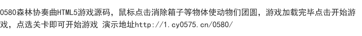 0580森林协奏曲HTML5游戏源码鼠标点击消除箱子物体使动物们团圆 ![]() 以萌养阵,方可长命百岁。 |