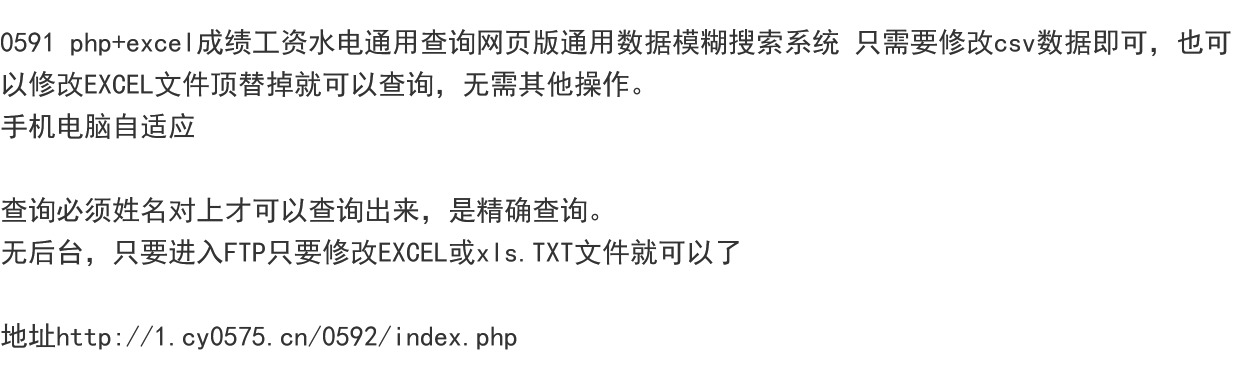 0592php+excel修改成绩工资水电通用查询系统源码手机电脑自适应 ![]() 以萌养阵,方可长命百岁。 |