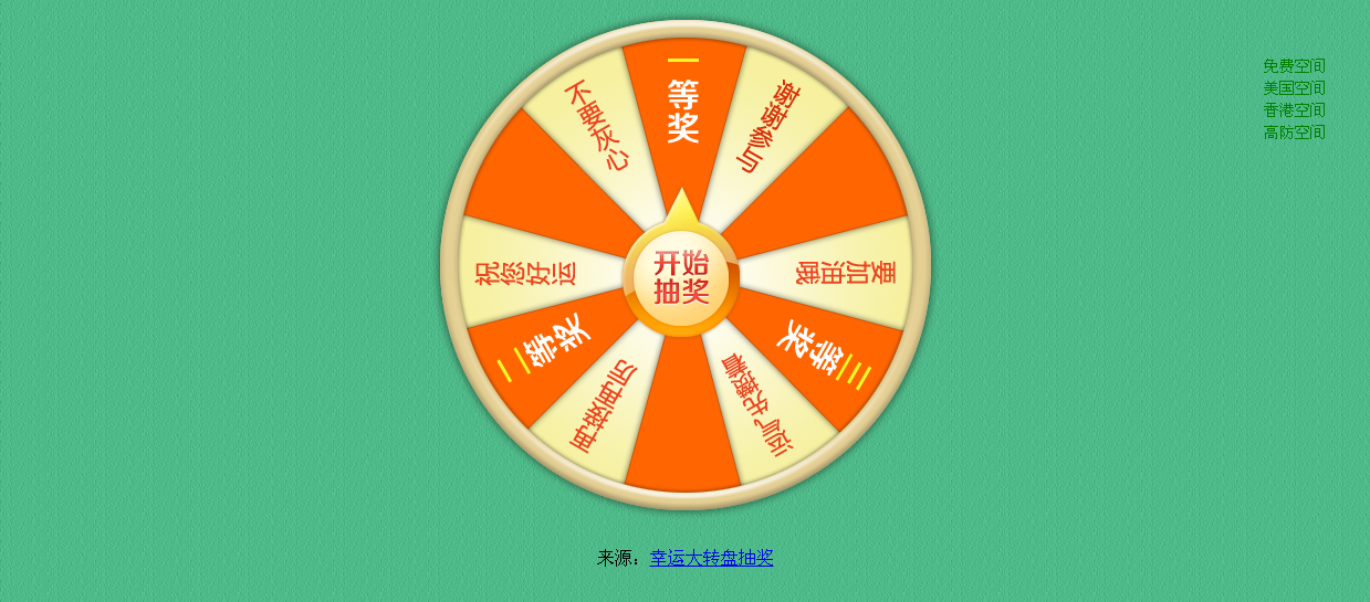 0208幸运大转盘抽奖是一款基于 jQuery实现的转盘抽奖代码 演示地址: http://web.cy0575.com/0208 本源码是HTML格式的源码无后台,直接在HTML格式 源码里面用记事本修改就好。 亲,请直接拍下即可,店家会在第一时间发货。 如遇店家不在,拍下即可。 店家每天会在晚上19:30-22::00之间统一发货。 0211转盘抽奖游戏代码是 一款基于jQuery实现的实用 转盘抽奖游戏制作源码 演示地址: http://web.cy0575.com/0211 演示地址: http://web.cy0575.com/w0031 亲,相关设置需要自己修改 使用本源码需要了解源码基础知识咯。 以萌养阵,方可长命百岁。 |