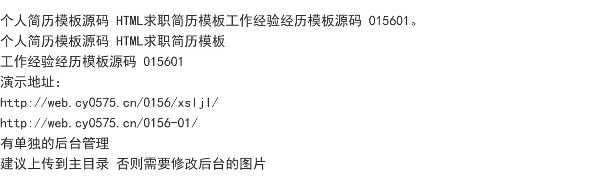 | 阅:44152 | 回:2 | 个人简历模板源码 HTML求职简历模板0156 |