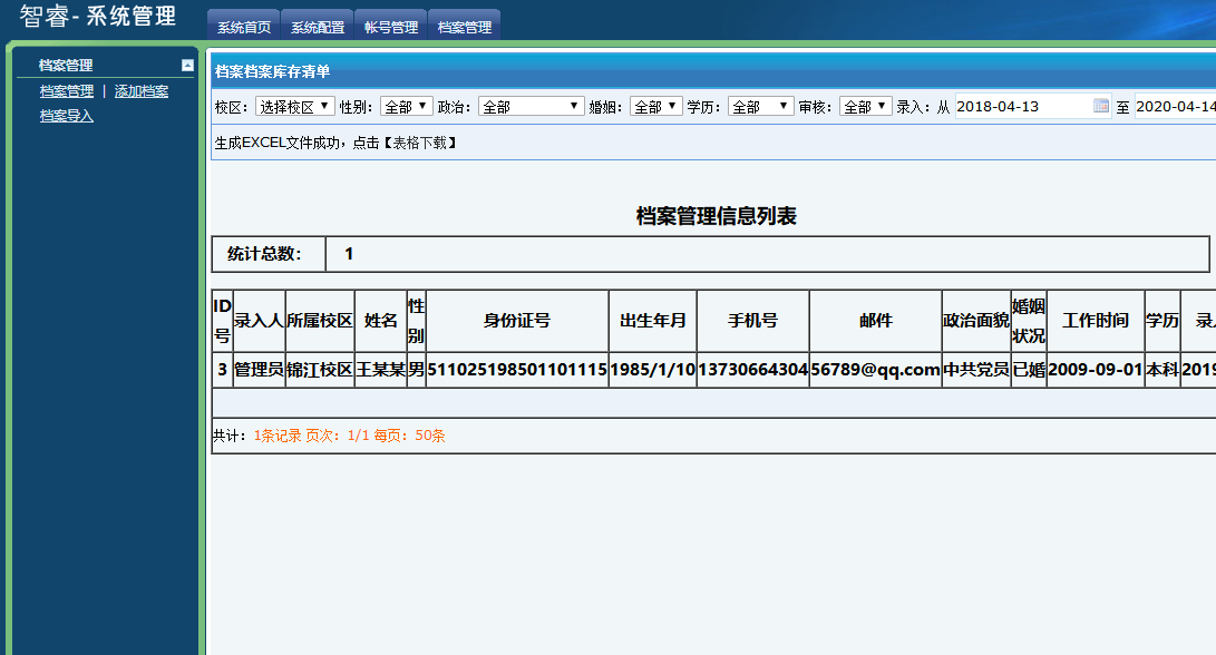 教师档案 - 支持在线EXCEL电子表格导出,及打印数据
