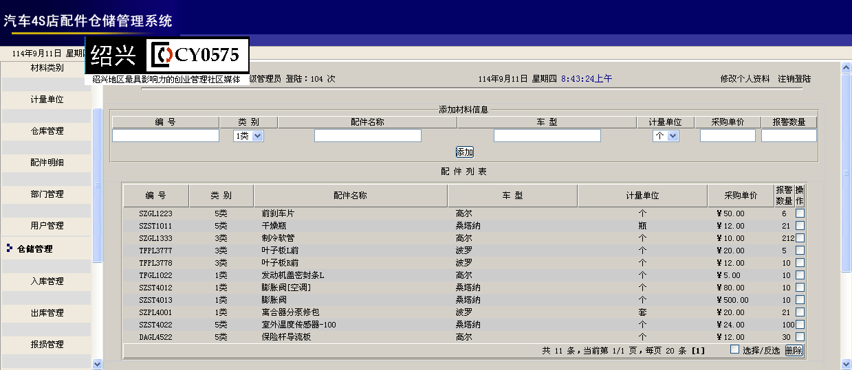 源码基本情况描述: 该程序是在自己 原 <某厂材料仓储管理系统 > 的基础上为编写的。 您所下载的代码全部开放,无任何限制。并经过大量测试,最小的杜绝BUG存在。 功能主要包括:配件出入库管理、库存管理、报损管理 调拨管理、出入库查询统计等。程序简洁实用,可广泛用于各种材料的日常仓储管理操作。为方便大家二次开发,现开放全部源代码。 功能主要包括:配件出入库管理、库存管理、报损管理 调拨管理、出入库查询统计等。程序简洁实用,可广泛用于各种材料的日常仓储管理操作。为方便大家二次开发,现开放全部源代码。 源码说明: 开发语言:ASP,上传服务器即可使用,无需繁锁的安装,方便快捷! 演示地址: http://web.cy0575.com/0063/default.asp 要看内部向店家领取用户名和密码。 演示二:4052仓库管理系统演示地址:http://web.cy0575.com/4052 以萌养阵,方可长命百岁。 |
