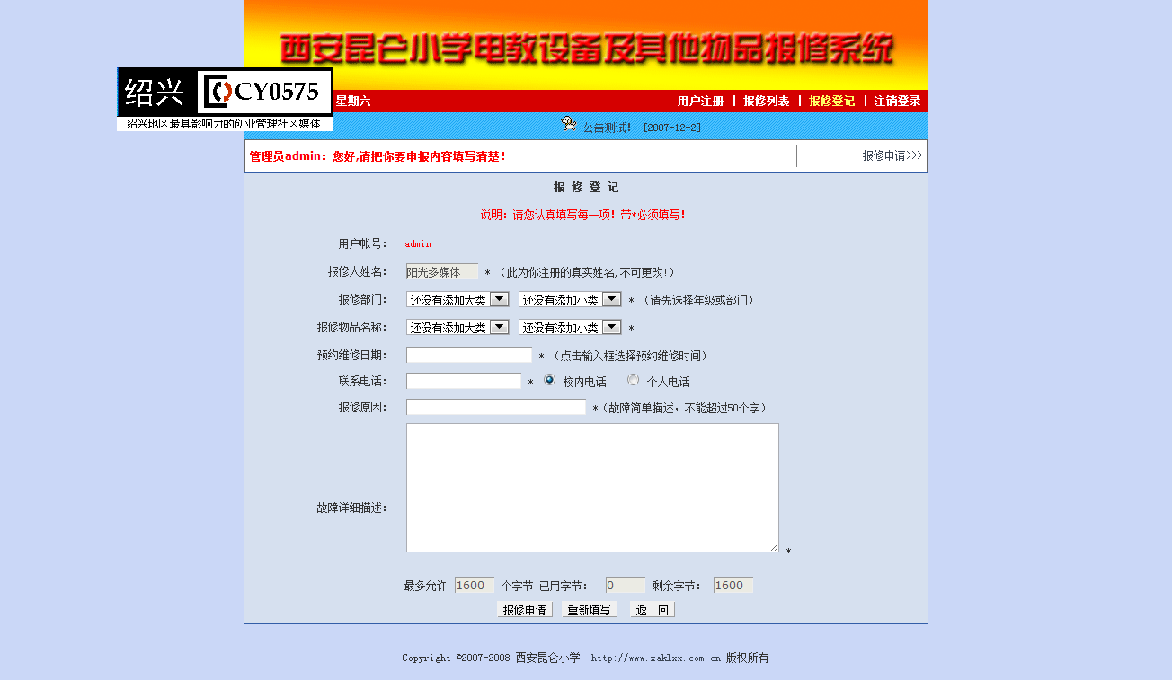 在西安昆仑小学设备报修系统的基础上修改的设备 保修源码是在以前系统基础上完善了后台功能。 你可以在后台轻松的进行年级、班级、物品的 分类添加,可以指定注册用户中的任何一个人 为前台管理员;你可以在后台随时更改用户注册 身份验证;同时修改了部分已知的bug。 默认前台的用户名是***,密码是:***888; 前台默认管理员是***用户。你可以在注册新的用户后 在后台修改前台管理员为你新注册的用户。 后台登陆用户名是***,密码是:***888; 可在/***/index.asp文件中修改后台用户名和密码。 后台登陆路径/***/index.asp 如还有什么不明白的地方欢迎到我的网站论坛来讨论; 同时希望大家多提宝贵意见和建议! 另外看验证码要 鼠标从右边到左边按右键复制就可以看到验证的数字了 这个功能非常不错咯。 演示地址: 前台:http://web.cy0575.com/2013 后台:http://web.cy0575.com/2013/*** 源码说明: 以萌养阵,方可长命百岁。 |