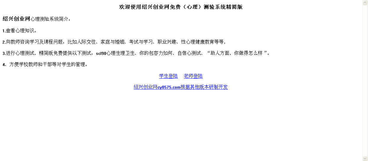 源码基本情况描述: 绍兴创业网 心理测验系统简介:1.查看心理知识。 2.向教师咨询学习及课程问题:比如人际交往、家庭与婚姻、考试与学习、职业兴趣、***心理健康教育等等, 3.进行心理测试,精简版免费提供以下测试:scl90心理生理卫生、你的包容力如何、自信心测试、“助人方面,你做得怎么样”。 4、方便学校教师和干部等对学生的管理。 源码不提供修改,如需修改请自行修改。 如需要我帮你安装调试的,需要交纳一定的手续费用。 购买须知: 购买模板源码需有一定的源码知识基础,同时所购源码价格未含源码安装和调试费用,不会安装和调试、修改源码的客户请慎拍;本站所售各个源码都有独立的演示站点,实际源码功能与演示站点源码功能完全相同,请客户认真仔细的查看演示站点功能,[b]满意的话直接拍下并留下邮箱即可。感谢你的光临,祝你工作顺利、一帆风顺![/b] 演示地址: http://web.cy0575.com/0025 演示地址图片: 以萌养阵,方可长命百岁。 |