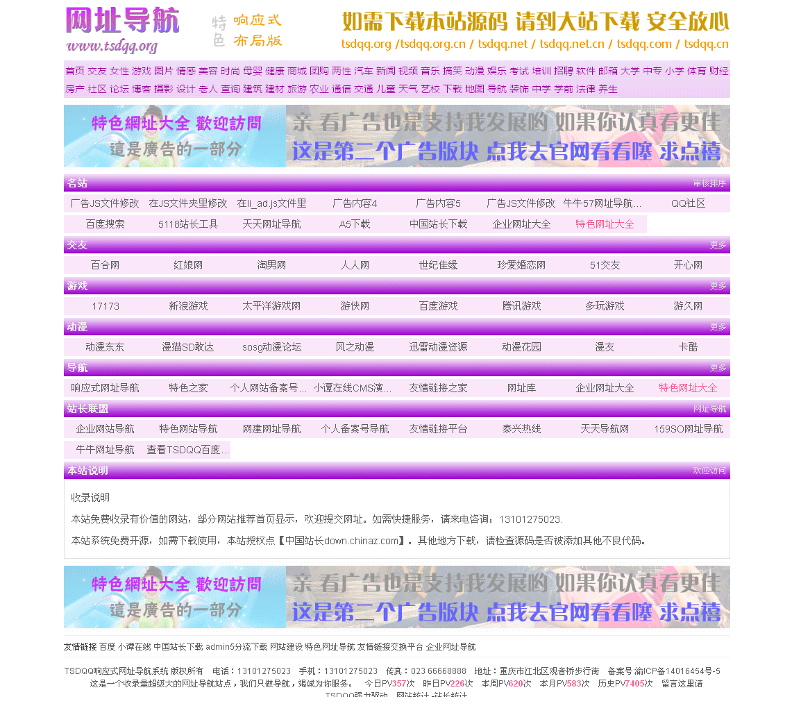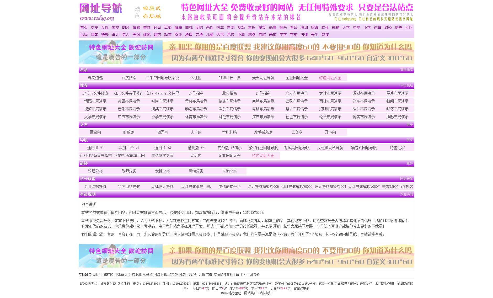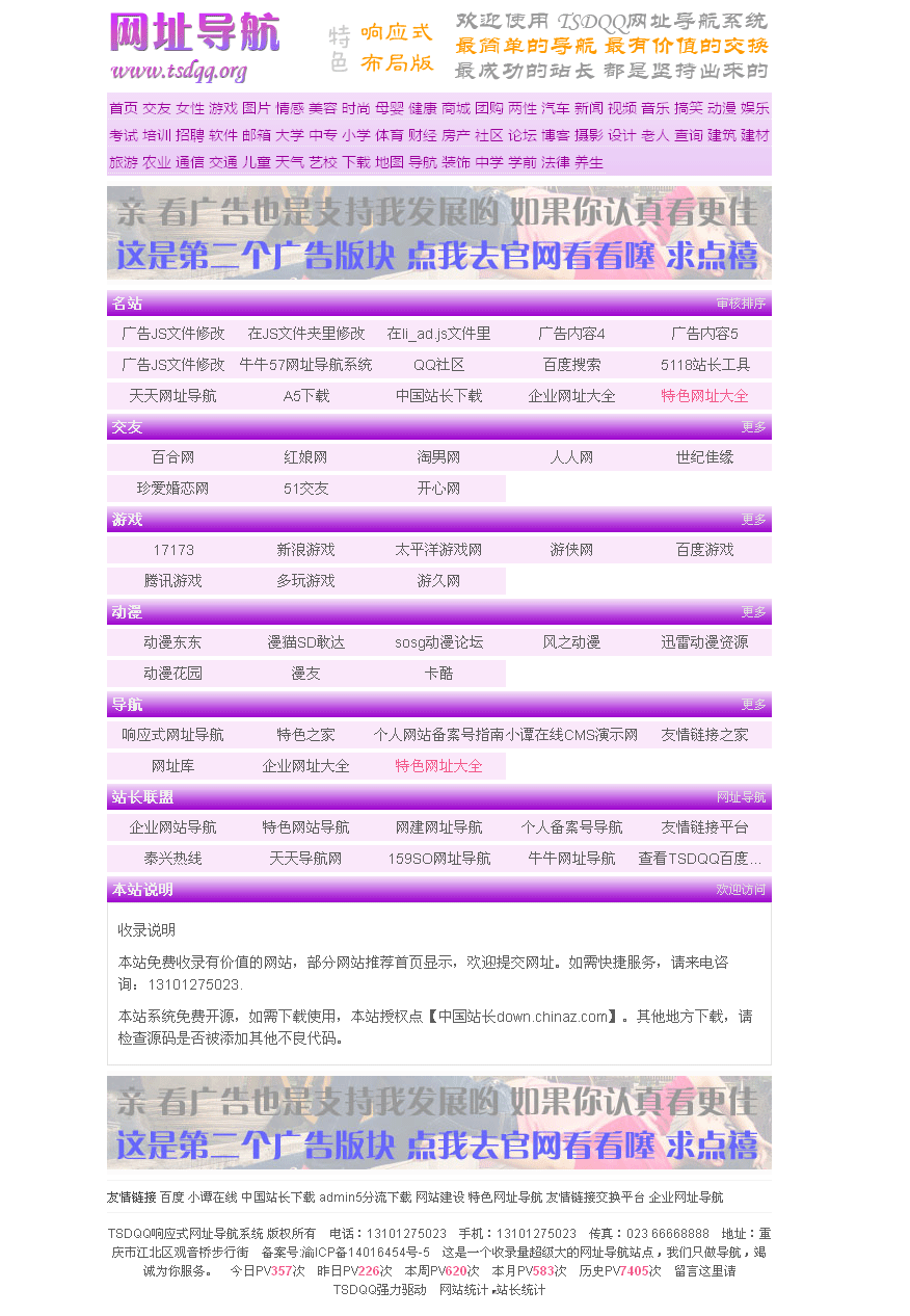 ************ TSDQQ响应式布局网址导航系统带后台 全功能 UTF-8版 ********** ---------------------------------------------------------------------------------- TSDQQ响应式布局网址导航系统带后台 兼容PC/平板/主流智能手机。(UFT-8版)简介: 1、此版为商业精简版。可长期正常使用,网站功能无任何限制。 5、TSDQQ响应式布局网址导航系统,是一套免费开源的ASP网站系统。适合快速建立网址导航网站的各位站长使用。 11、由于是相应式布局,兼容手机,所以使用“广告联盟”的朋友需要注意设置。 12、测试,请在IIS环境下,或者上传到空间,再或者浏览演示站,不支持小旋风等简易测试。 ---------------------------------------------------------------------------------- 使用须知: ---------------------------------------------------------------------------------- 演示地址:http://1.cy0575.cn/x0003 ---------------------------------------------------------------------------------- 以萌养阵,方可长命百岁。 |