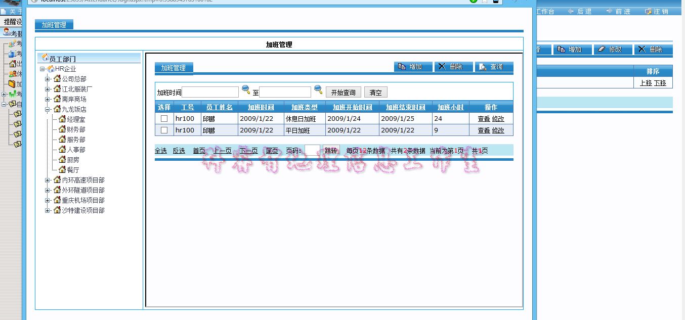 源码一:基本情况描述: 员工工资系统,又名《收益系统》ASP网站程序 功能: 网站基本信息 1. 系统配置 2. 注册协议 3. 管理员登录信息 4. 员工登录信息 管理员设置 1. 添加管理员 2. 管理员列表 3. 管理员权限 员工管理 1. 注册审核 2. 添加员工 3. 所有员工信息 4. 在职员工列表 5. 员工签到信息 资薪管理 1. 设置职位薪资 2. 添加结算工资 3. 查看结算管理 4. 现金提取清单 5. 管理员月结操作 公告管理 1. 添加公告 2. 公告管理 留言管理 1. 查看我的留言 2. 发送我的留言(可单发、群发) 数据库管理 1.数据库备份 2.数据库恢复 源码说明: 开发语言:ASP,上传服务器即可使用,无需繁锁的安装,方便快捷! 演示地址: http://web.cy0575.com/0062/ 演示:http://cy05751.3vzhuji.com/0062/index.asp 后台账号 用户名:test001 密码:123456*** *** 源码二: 25元一个 C语言编写的。需要空间支持.NET才可以安装。 最强大的OA办公系统,特色功能:项目审批,电子印章,网络硬盘文件上传,签到功能,考勤绩效管理,日程安排,聊天讨论区等,完美测试,无BUG,使用无任何功能限制。 不退货说明:此商品是虚拟资源,支付购买,拒绝退货申请!本店所有宝贝只支持好评,差评师请绕道哦~ 针对买家经常咨询的一些问题,我在此给亲们做出解答:【1】这个系统开放全部的的源代码,并且具有详细的代码注解,可读***强,完全可以在此基础上进行二次开发。 源码三: 25元一个 编号为0262 OA办公系统源码0262 php/mysql OA办公自动化管理系统CRM管理系统源码 【自动发货】拍下自动发送下载地址 我们不仅仅是卖源码,更多的是我们的服务态度 ,每个都是独立完整的源码,亲测无误才上架销售的,一点技术不懂、又不想学习的朋友请勿拍 谢谢合作,源码本身价格就不高,不可能花几块钱陪您把网站做完,如果需要技术支持,请拍技术支持 宝贝简介:店主不在话可直接拍,全场源码自动发货 店主温馨提示: 还原数据后请修改密码 系统-系统用户管理 并且看清楚用户名是否为*** 很多人以为是*** 退出后就登录不上了 【 店主推荐1】 【安装费用25元 】 【 店主推荐2】 【此源码刚刚升级,不懂做网站的可以购买188元的升级版,升级版包含网站logo+域名+空间+安装 】 演示地址 :http://php4.29mb.com *** ***888 以萌养阵,方可长命百岁。 |