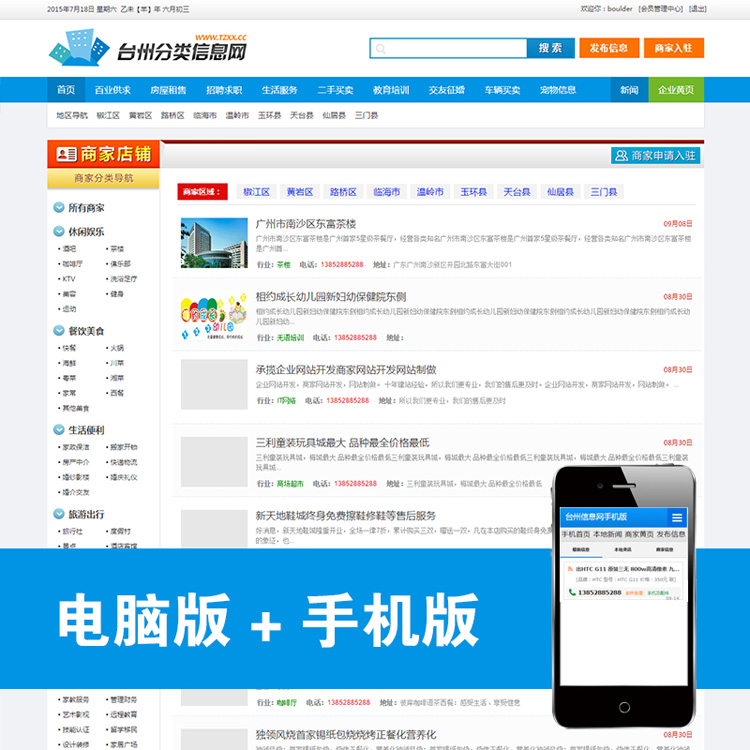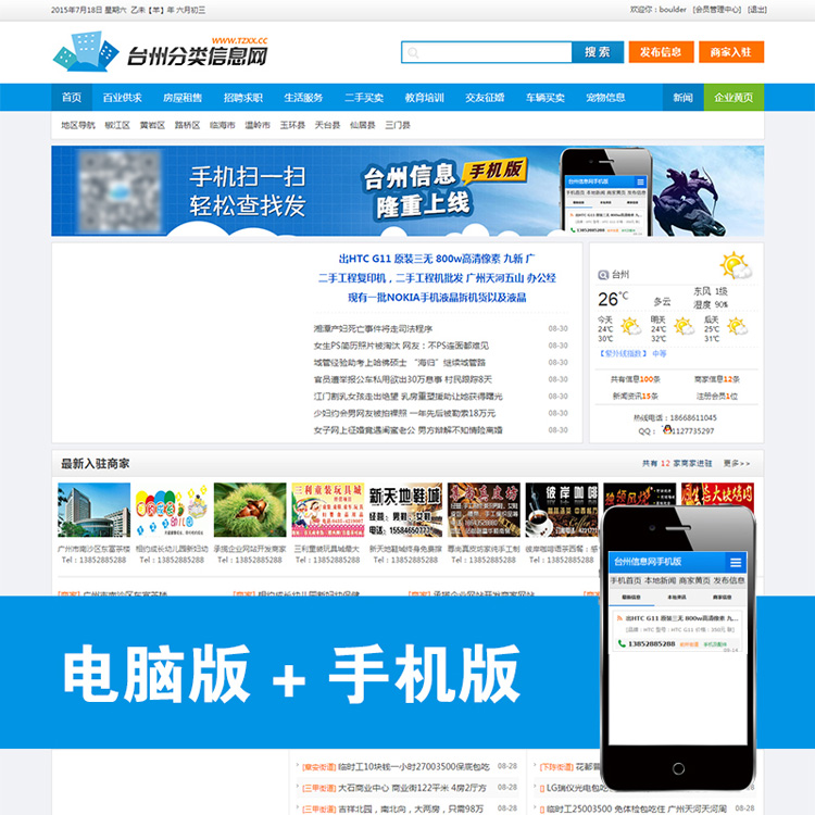 分类信息网源码PHP+mysql 手机端 电脑端 简洁大气 宽屏 phpmps