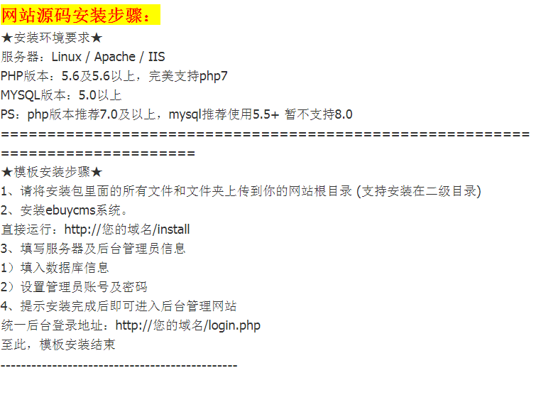 2.1、下载 ebuycms 安装包 2.2、上传 ebuycms 安装包如果是远程安装,则把安装包解压,把里面的文件上传至虚拟主机的根目录,如:root,www,htdocs,wwwroot之类的文件夹里。如果是本地安装,则到 phpStudy(或其他的集成环境) 网站根目录下(安装的盘符 phpStudywww),将ebuycms安装包解压到当前文件夹中; 2.3、安装 ebuycms系统 打开浏览器,访问 http://您的域名/install/ 即可进入安装界面,按照步骤一步一步操作完成安装;*注意:第三步,配置系统里的数据库信息需要根据自己的空间指定的信息填写,否则提示不能连接。PS:数据库用户名及数据库名均可以更改成空间提供的名称。 管理员信息设置中,设置登录网站后台的管理员账号及密码,设置好之后,记住「账号」和「密码」就可以了,后期需要更改可以在后台改; 2.4、登录网站后台: 打开浏览器,访问:http://localhost/login.php进入网站后台登录界面,输入「 账号」和「 密码」进入后台管理界面; 以萌养阵,方可长命百岁。 |