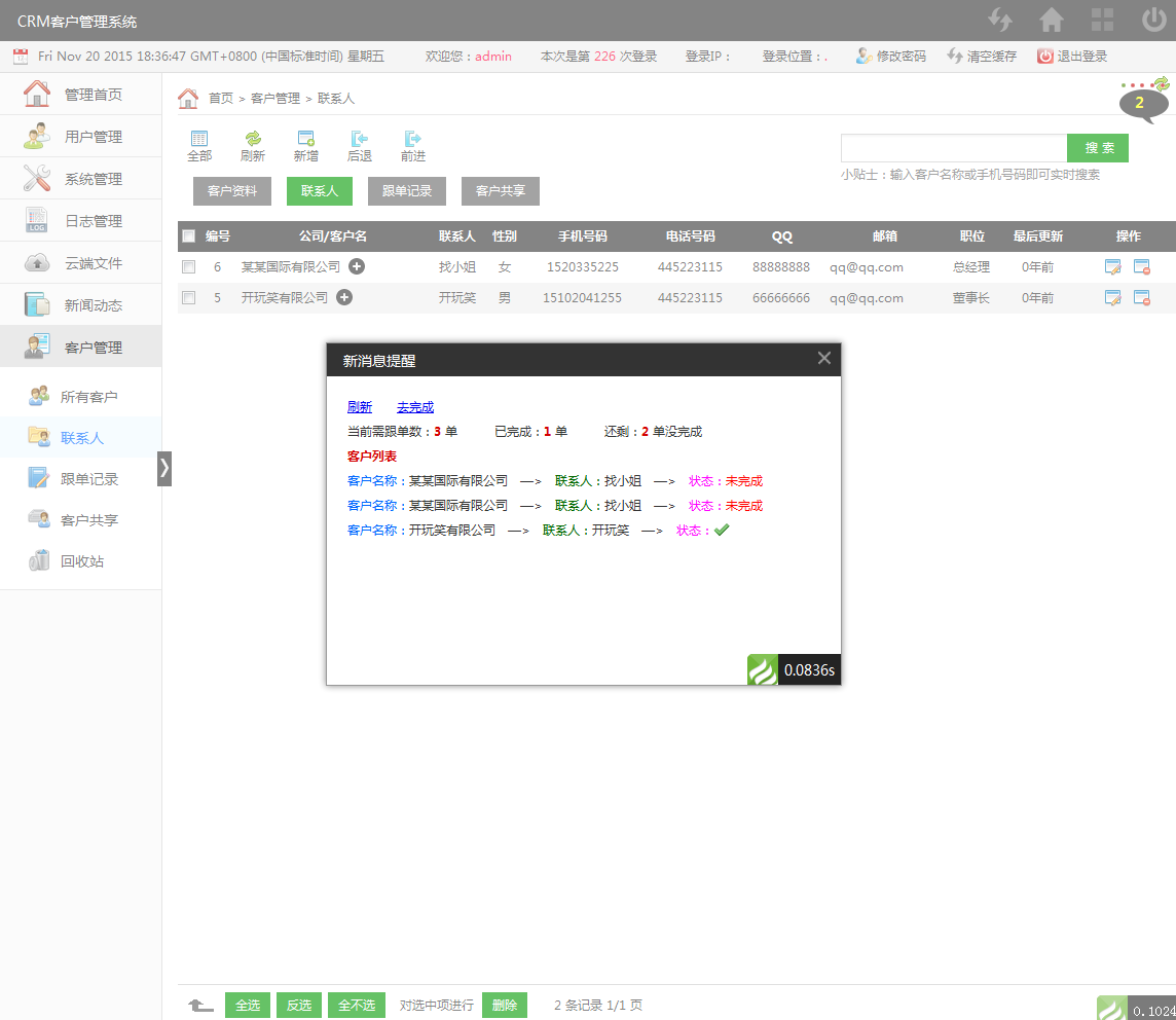 CRM客户关系管理系统php源代码 程序语言:PHP+MYSQL 使 需要演示请与店家联系