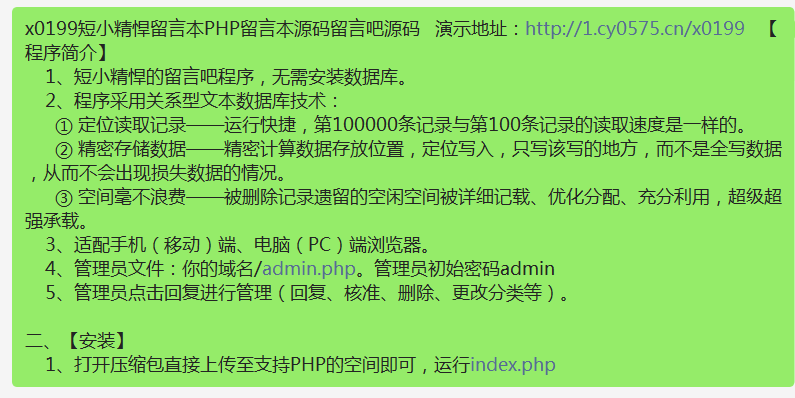 | 阅:63311 | 回:4 | x0199短小精悍留言本PHP留言本源码留言吧源码 |