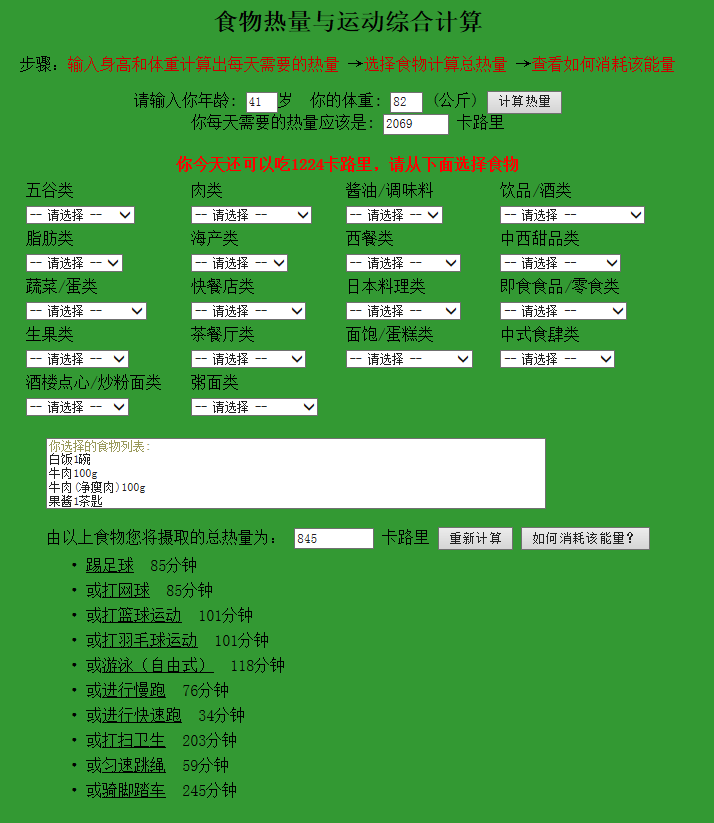 0848食物热量与运动综合计算 asp版只有一个班index文件源码,演示地址http://yanshi.cy0575.cn/0848/ 以萌养阵,方可长命百岁。 |