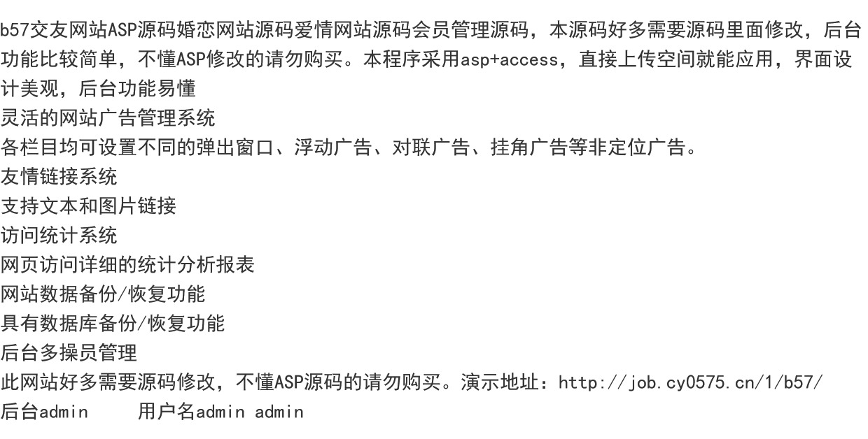 b57交友网站ASP源码婚恋网站源码爱情网站源码会员管理源码 以萌养阵,方可长命百岁。 |