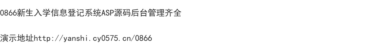 | 阅:87627 | 回:11 | 0866新生入学信息登记系统ASP源码后台管理齐全 |