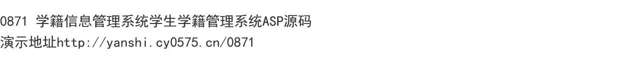 | 阅:75246 | 回:7 | 0871 学籍信息管理系统学生学籍管理系统ASP源码 |