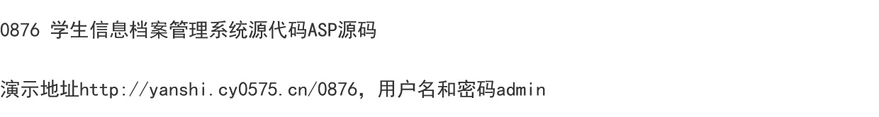 | 阅:73208 | 回:8 | 0876 学生信息档案管理系统源代码ASP源码 |