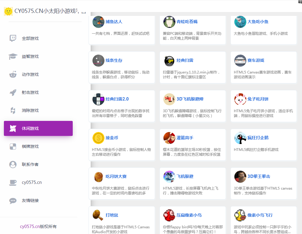 0914 80套H5小游戏源码微信手机游戏网站源码带网页导航大全,由于源码比较大,有101M大,压缩后也有81M大,无法做演示,请仔细看图片,图片里有的游戏源码都有,可以在线玩的,也可以单独一个一个的拿出来单独制作使用。是整个网站源码咯,不是模板。无后台直接HTML5运行。 以萌养阵,方可长命百岁。 |