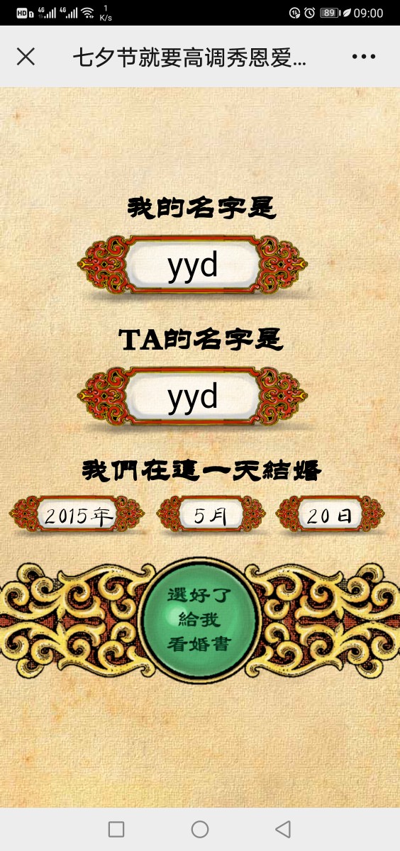 0924 高调秀恩爱结婚证书源码制作婚书手机滑动HTML源码,演示地址http://job.cy0575.cn/1/0924/ 以萌养阵,方可长命百岁。 |