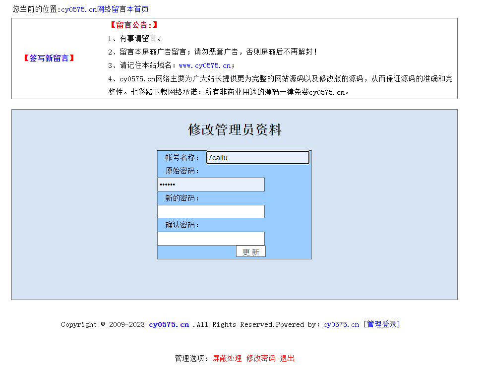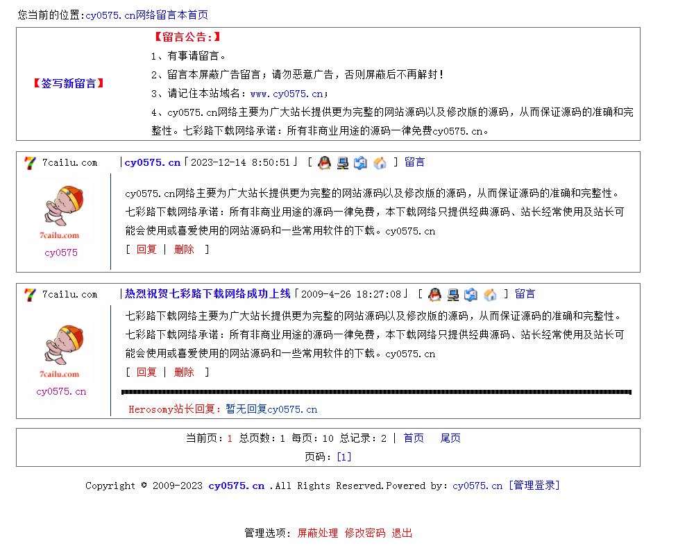 | 阅:88423 | 回:5 | 0981 简约论坛留言本ASP留言本源码非注册留言管理员登陆管理 |